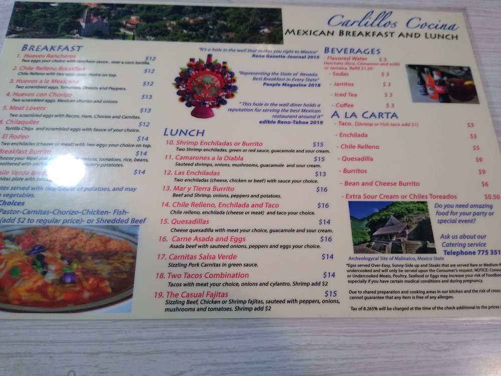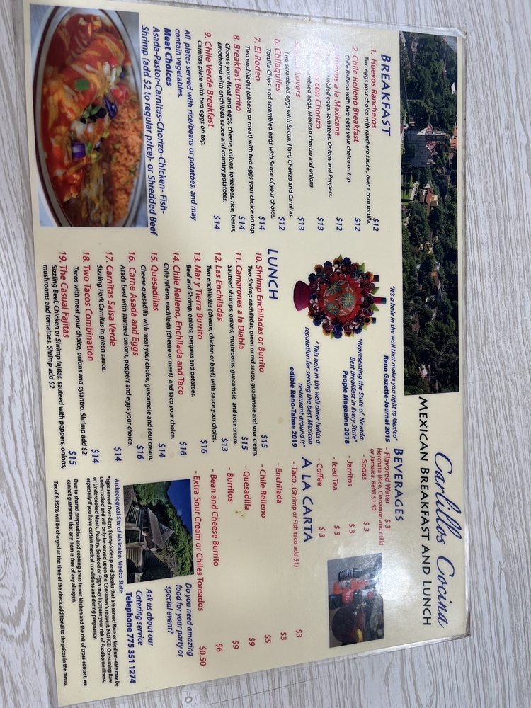 Nestled in Sparks, NV, Carlillos Cocina serves up a vibrant array of Mexican breakfast and brunch delights. This Latinx-owned gem offers a casual atmosphere perfect for families and groups, with welcoming staff ready to make your dining experience memorable.